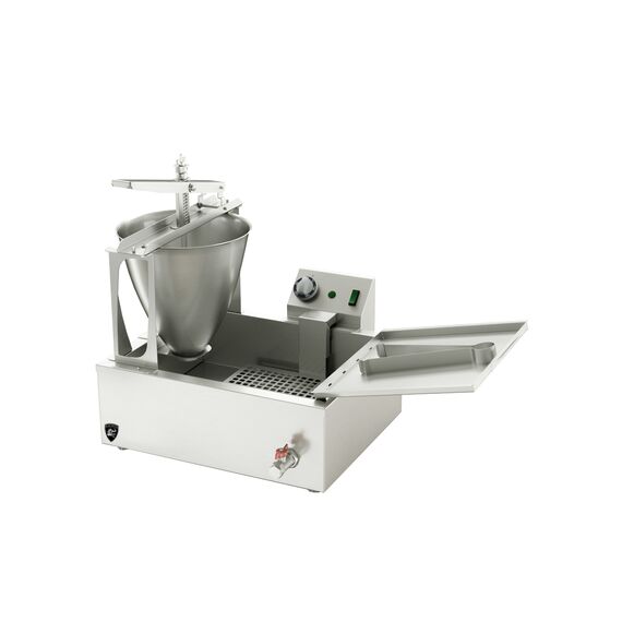 Заказ от 5шт.770x505x550мм, 220В, 50Гц, 3,9кВт, производительность 200 пончиков в час. Объем фритюрной ванны 16л, объем заливаемого фритюра 8л, объем дозатора 6л, диаметр поршня 30мм, масса пончика 20г. Время разогрева фритюра (масла) до температуры 190 С 25мин. Вес 10кг. Дозатор теста позволяет формировать пончики правильной формы при любой густоте теста и обеспечить одинаковую массу формируемых шариков.