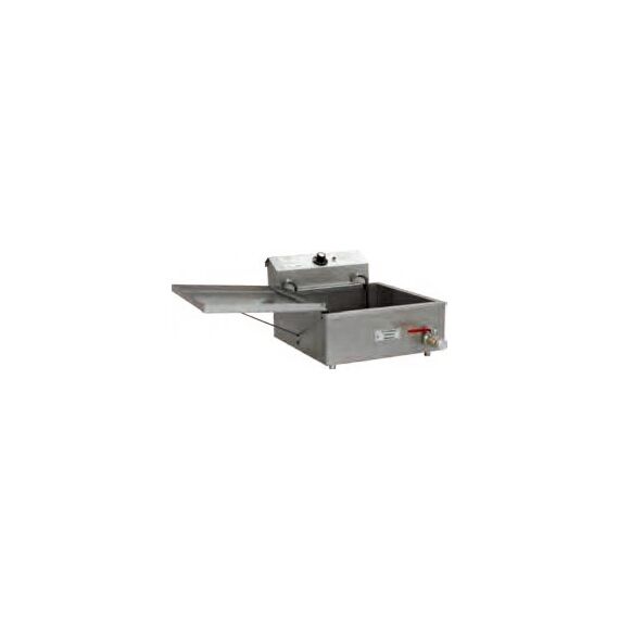 695*545*260мм, Фритюрница электрическая для чебуреков, 1 ванна 6л, настольная, нерж.сталь. В комплекте вкладыш перфорированый, крышка-полка с распоркой