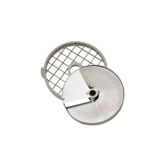 Комплект для нарезки кубиками, производства ROBOT COUPE (Франция) артикул 28180, предназначен для нарезки гастрономических продуктов: колбасных изделий, сыров твердых сортов, копченостей и других пищевых продуктов на равномерные кубики.Комплект включает в себя решетку для кубиков и диск для нарезки и позволяет нарезать продукты на мелкие кубики одинаково размера: 50 мм (ширина), 70 мм (глубина), 25 мм (высота). Комплект предназначен для оборудования:R 502, CL 50, CL 50 Ultra, CL 52, CL 55 автоматическая, CL 55 с рычагом, CL 60 Автоматическая, CL 60 с рычагом.