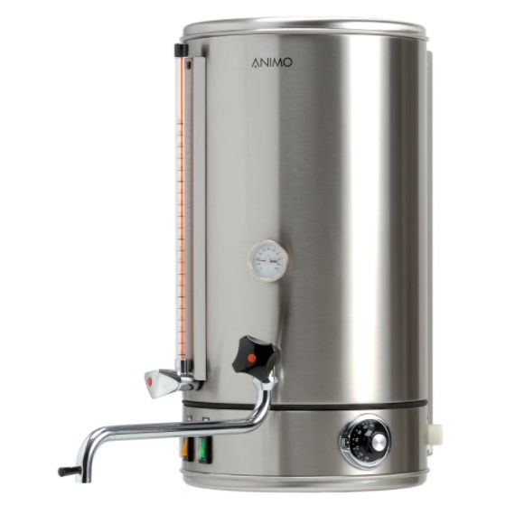 Профессиональный настенный электрокипятильник, производства ANIMO (Нидерланды), модель WKI 80N, предназначен для кипячения воды. Аппарат поможет при приготовлении растворимых напитков, заваривании чая или кофе. Широкое применение подобные кипятильники находят в столовых разнообразных учреждений, ресторанах, кафе, кофейнях или предприятиях фаст-фуда.Мощный электрокипятильник WKI 80N имеет возможность крепления к стене. Термостат устройства способен поддерживать температуру воды в диапазоне от 0 до 97 °С. Аппарат полностью выполнен из качественной кухонной нержавеющей стали, соответствующей всем требованиям и стандартам, предъявляемым к пищевому оборудованию. Кипятильник подключается к водопроводу и работает в режиме автоматического залива воды по мере необходимости.Объем нагревательной камеры составляет 80 л, размеры аппарата (мм): 445 (ширина), 445 (длина), 890 (высота). Прибор питается от сети БЕЗ НЕЙТРАЛИ с напряжением 380В и частотой 50Гц. Мощность данной модели составляет 19,2 кВт. Производительность моде