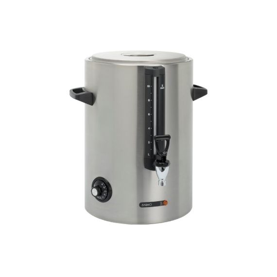 306x306x425 мм без ручек, с ручками d 390 мм, 3,2 кВт, 220В, настольный, подключение к водопроводу, с встроенным указателем уровня воды, высококачественная нержавеющая сталь CrNi 18-9, с двойными стенками для дополнительной надёжности, ёмкость 10 л, за один раз проливает 8 л, производительность в час: 240 чашек, 30 литров, время нагрева за 17 мин. с 20 до 97 C, регулируемая температура от 0 до +97C, защита от работы в сухую