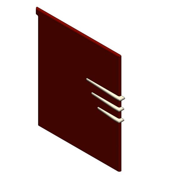 Фасад боковой левый предназначен для витрин, мармитов и прилавков линии раздачи «Case» со столешницей из нержавеющей стали. Материал фасадных панелей – МДФ.