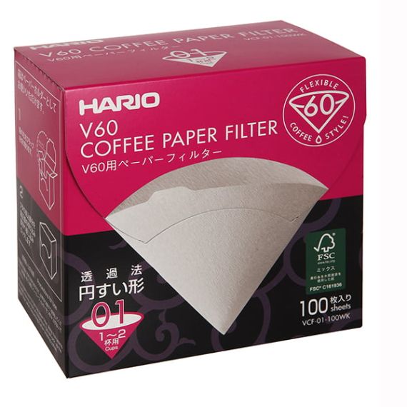 Фильтры бумажные для воронок Hario VCF-01-100WK (100 шт) картонная коробка
