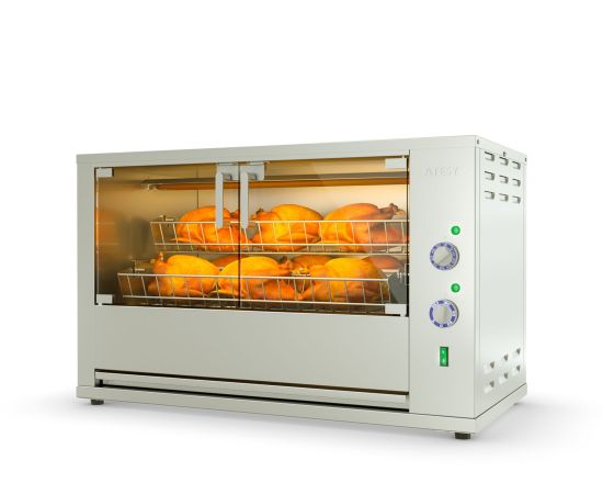 860х465х530мм, 6,0 кВт, 220 В, +50...+250С, встроенный таймер: 15-120 мин, 4 садка, вместимость: 12 кур