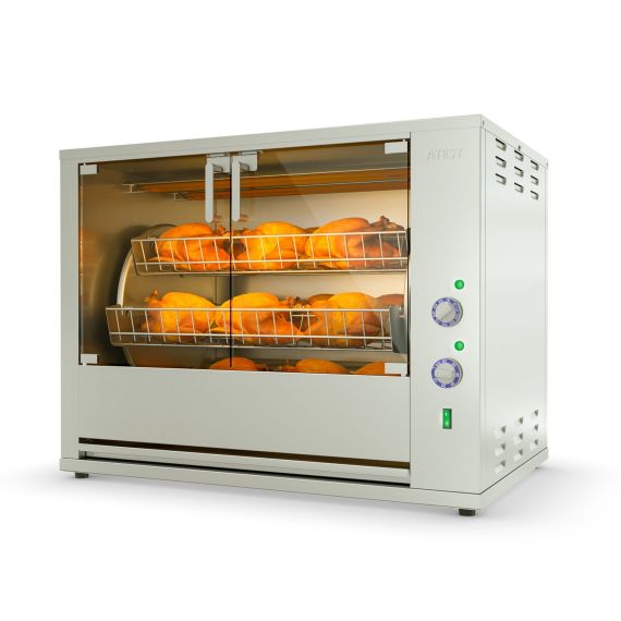 860х580х655мм, 8,0 кВт, 220 В, +50...+250С, встроенный таймер: 15-120 мин, 6 садков, вместимость: 18 кур