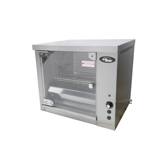 608x540x665 мм, Гриль на 10 тушек, 5 корзин, большая стеклянная дверь и задняя стенка, подсветка камеры, термостат 50-300 С, кнопка прокрутки барабана, таймер на 120 минут, исполнение - полностью из нержавеющей стали, 3.75 кВт, 608х540х665, масса нетто/брутто, кг 45/58