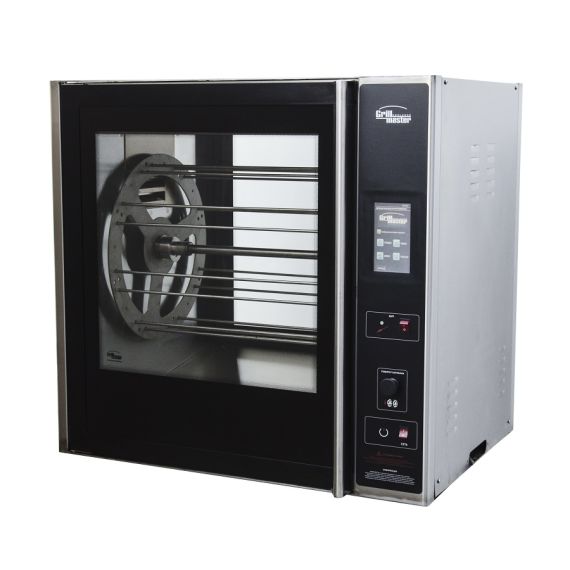 1030х750х950 мм, Гриль нового поколения, 8 спиц для одновременного приготовления 40 тушек 1.3-1,8 кг, 8 корзин для кур и субпродуктов(опция), 8 угловых шампуров для кур (опция), возможно одновременное использование корзин и спиц для приготовления, мощный вентилятор конвекции, вентилятор принудительного охлаждения камеры, яркая галогенная подсветка камеры, 3 программируемых режима приготовления с 4 шагами программы, термощуп, электронная. сенсорная панель управления с функцией программирования, сквозной доступ в камеру гриля (2 двери), стекла гриля с теплоотражающим покрытием, разборный барабан, полностью из н/стали c черным покрытием(на выбор клиента), 50-240 С, 11.25 кВт, 380В, г.нетто 1030х750х950мм, 210 кг, г.брутто 1130х840х1200мм 242 кг