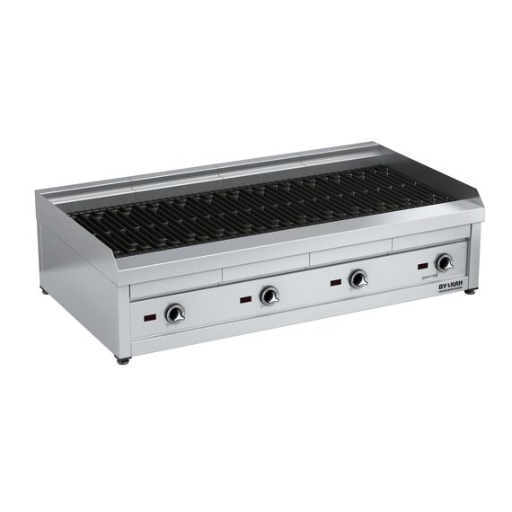 1300х700х350мм, Настольный лавовый гриль из нержавеющей стали с 4-мя зонами нагрева. Особенность этого гриля – наличие лавовых камней, долго держащих тепло и выполняющих роль раскаленных углей. Капли жира, попадая на камни, образуют лёгкий дымок, придающий мясу неповторимый вкус. Добавив на камни немного древесной стружки, вы получите продукт с тонким ароматом копчения. Важная деталь гриля – чугунная решетка, обладающая отличными антипригарными свойствами и придающая продукту характерный рельефный рисунок, 4х4,5кВт, 380В, Брутто: 178кг
