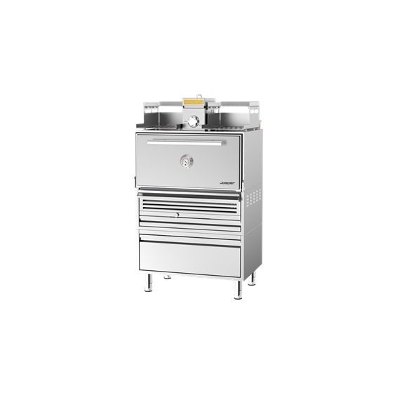 916х778х1660мм, в комплекте: искрогаситель, диффузор, щипцы, проволочная щетка, одна решетка для гриля 510*760мм и кочерга для золы, стол-подставка с ящиком, сверху подставка для подогрева, производительность - до 90 кг/час, рекомендуется для заведений с количеством посадочных мест до 120, цвет двери уточнять при заказе
