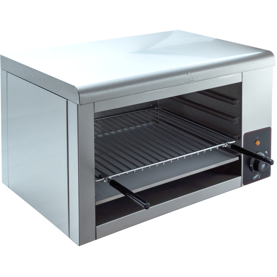 Грили Саламандра CRAZY PAN используются для приготовления и финальной обработки блюда, идеально подходят для колеровки блюд - придания хрустящей румяной корочки. Вы сможете приготовить овощи, сэндвичи, блюда из рыбы и мяса. Решетка с ручками позволяет легко регулировать расположение блюд по высоте внутри камеры. Широкий температурный диапазон дает возможность не только подогревать, но и полностью готовить. Плавный подогрев позволяет нагревать блюда с разной интенсивностью. Важным преимуществом наших грилей является возможность их крепления к стене, что экономит место на кухне. Модель имеет неподвижную верхнюю панель с ТЭНами. В комплектацию входит поддон для сбора крошек и жира.