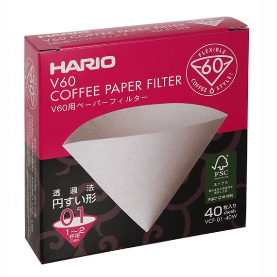 HARIO Бумажные фильтры белые для воронок (40шт) VCF-01-40W