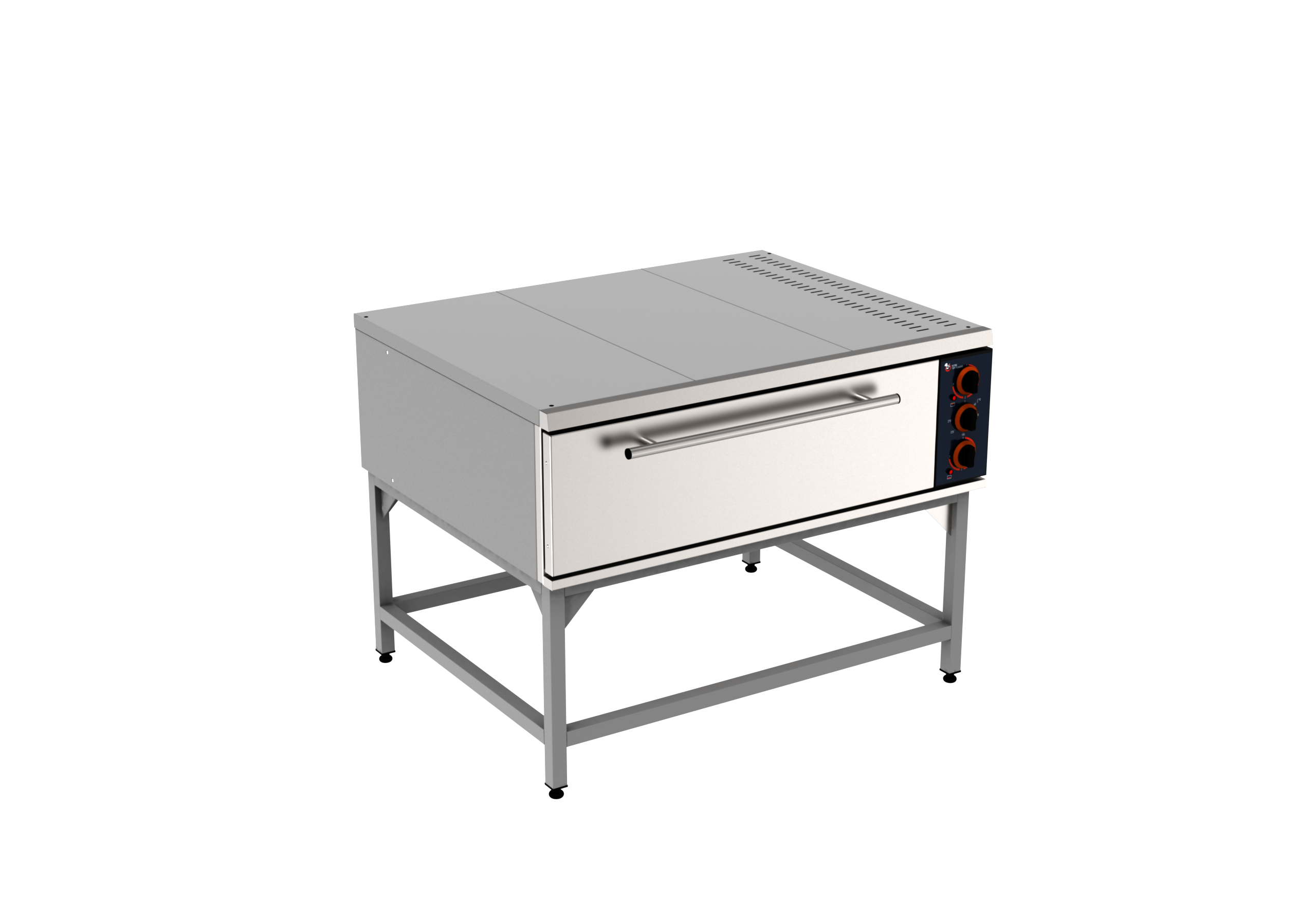 Хлебопекарный шкаф ХПШ-1, односекционный, 3х-уровневая регулировка мощности верхних и нижних нагревателей в каждой камере, регулятор температуры; мощность - 5,2 кВт. Наличие пароувлажнения. Шкаф предназначен для выпечки хлеба. Шкаф хлебопекарный имеет модульную конструкцию в виде подставки, секции духового шкафа и крышки (поставляется в собраном виде). Подставка выполнена из профильных элементов конструкц. стали толщиной 1,5 мм. , ножки из профильной трубы 40х40 и окрашена порошковой краской серого цвета. Лицевая панель выполнена из нерж стали марки AISI 430 толщиной 1,2 мм. Задняя и боковые панели, а так же крышка выполнены из конструкц. стали толщиной 1 мм окрашенной порошковой краской серого цвета. В комплекте 2 противня на секцию. Масса шкафа 165кг. Внутренние размеры духового шкафа: 1000х800х250, мм. Габаритные размеры шкафа:1300х1020х990,мм.