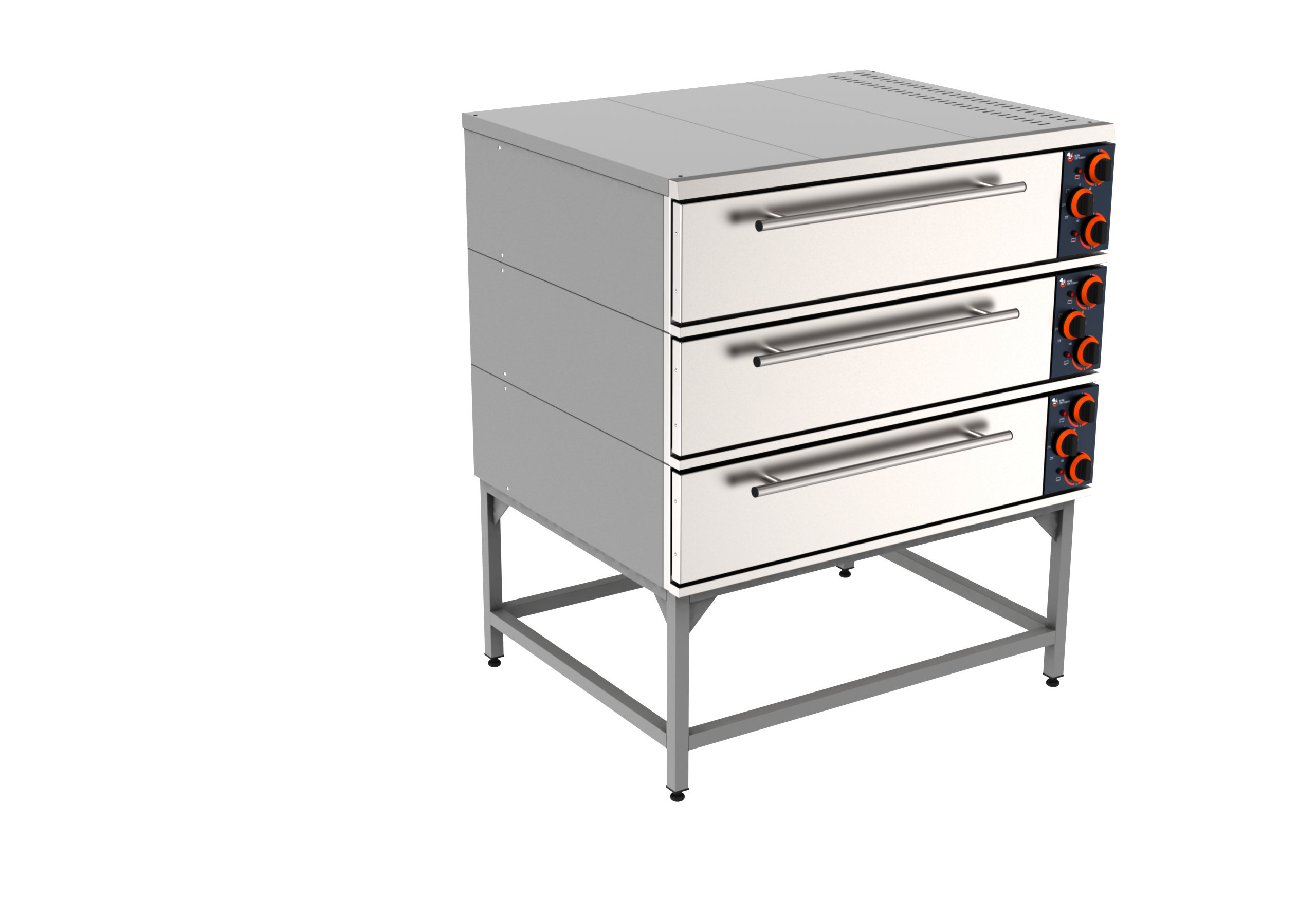 Хлебопекарный шкаф ХПШ-3, односекционный, 3х-уровневая регулировка мощности верхних и нижних нагревателей в каждой камере, регулятор температуры; мощность - 15,6 кВт. Наличие пароувлажнения. Шкаф предназначен для выпечки хлеба. Шкаф хлебопекарный имеет модульную конструкцию в виде подставки, 3х секций духового шкафа и крышки (поставляется в собраном виде). Подставка выполнена из профильных элементов конструкц. стали толщиной 1,5 мм. , ножки из профильной трубы 40х40 и окрашена порошковой краской серого цвета. Лицевая панель выполнена из нерж стали марки AISI 430 толщиной 1,2 мм. Задняя и боковые панели, а так же крышка выполнены из конструкц. стали толщиной 1 мм окрашенной порошковой краской серого цвета. В комплекте 2 противня на секцию. Масса шкафа 270кг. Внутренние размеры духового шкафа: 1000х800х250, мм. Габаритные размеры шкафа:1300х1020х1760 ,мм.
