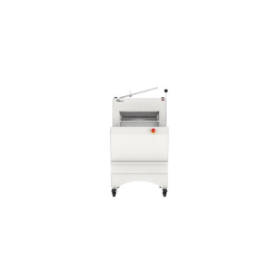 663*760*1243 мм, 0,49 кВт, 380В, напольная полуавтоматическая модель, нож стальной 13*0,5мм, максимальный размер изделия для нарезки 440*320*160 мм, высота толкателя 80 мм, цвет - белый. Для нарезки ломтиками 9 мм. Производительность до 200 нарезок/час. Рычаг плавной тяги обеспечивает более качественное управление усилием. Съемный бак для сбора крошек емкостью 18 л. Устройство для расфасовки в пакеты облегчает упаковку хлеба.