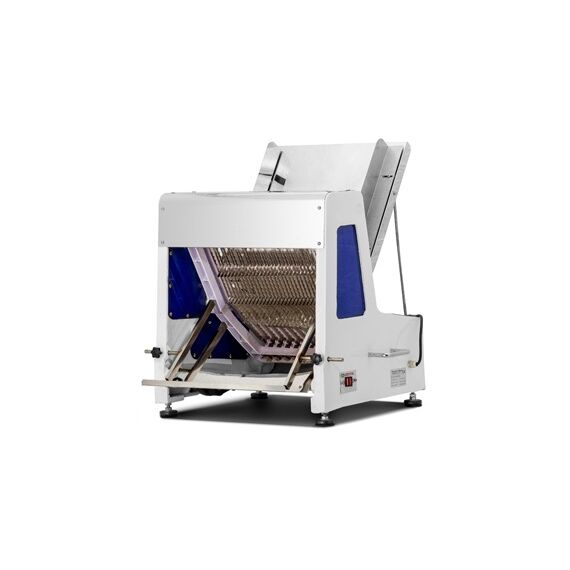 650x660x760мм, 220В, 0,25кВт, 64кг, количество ножей - 31 шт., расстояние между ножами 12 мм, максимальная производительность - 180 батонов/час, максимальная длина батона 38 см, материал рабочей части и ножей - нержавеющая сталь, материал корпуса крашеный металл.