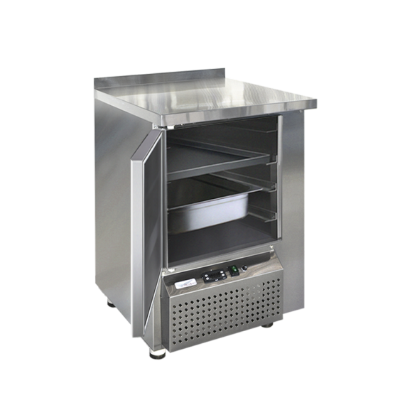 Холодильный стол выполнен из высококачественной пищевой нержавеющей стали. Используется электрический блок управления с функцией автоматической оттайки. Передняя панель агрегатного отсека имеет большую площадь перфорации, что позволяет обеспечить холодильному агрегату поступление воздуха для охлаждохлаждения.