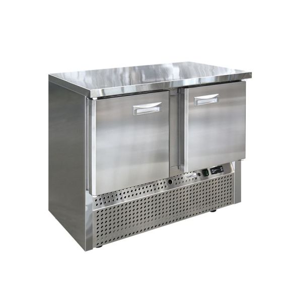 Низкотемпературный холодильный стол выполнен из высококачественной пищевой нержавеющей стали. Передняя панель моторного отсека имеет большую площадь перфорации, что позволяет обеспечить холодильному агрегату поступление воздуха для охлаждения.