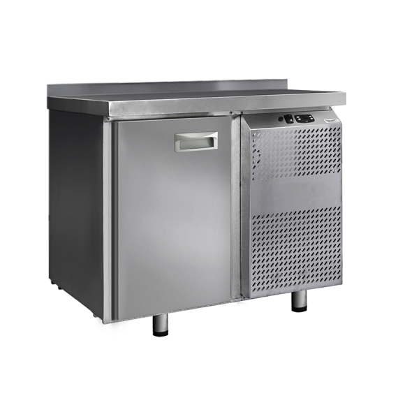 Холодильный стол выполнен из высококачественной пищевой нержавеющей стали. Столы могут производиться (выпускаться) с распашными дверями (ящиками), которые имеют надежные петли (для ящиков направляющие) с опцией доводчиков, что обеспечивает гарантированное закрытие и поддержание заданной температуры в рабочем объеме стола. Используется электрический блок управления с функцией автоматической оттайки. Передняя панель моторного отсека имеет большую площадь перфорации, что позволяет обеспечить холодильному агрегату поступление воздуха для охлаждения.
