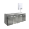 Холодильный стол выполнен из высококачественной пищевой нержавеющей стали. Используется электрический блок управления с функцией автоматической оттайки. Передняя панель моторного отсека имеет большую площадь перфорации, что позволяет обеспечить холодильному агрегату поступление воздуха для охлаждения.