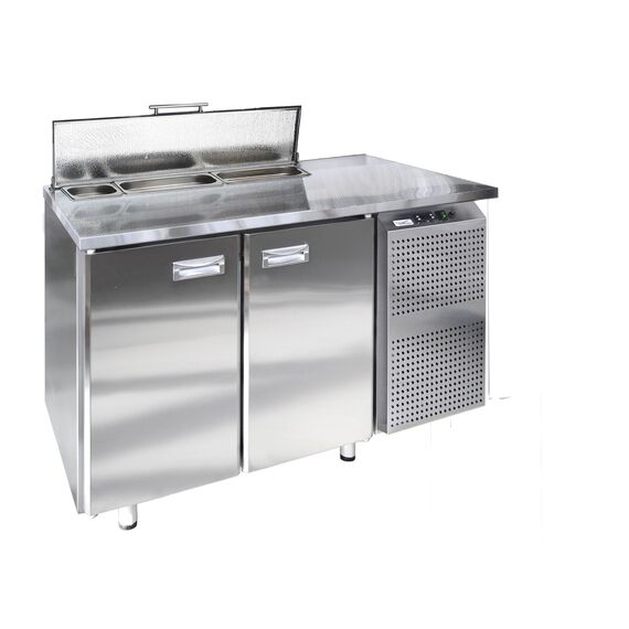 Среднетемпературный холодильный стол для салатов (саладетта) — предназначен для обеспечение сохранности и свежести составляющих для холодных закусок и салатов. Благодаря удобной конструкции всё необходимое для приготовления всегда под рукой у повара. Холодильный стол выполнен полностью из высококачественной нержавеющей стали. Возможно изготовление холодильного стола СХСс, как с откидной крышкой, охлаждаемого гнезда под гастроемкости, так и без нее. Предусмотрена возможность регулировки ножек по высоте для удобства работы. Регуляция температурного режима производится с помощью электронного блока управления.