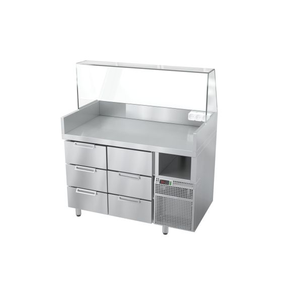 1235х750х1425(845*)мм, Подключаемая мощность 4,0 кВт, Мощность холодильного агрегата 0,4 кВт, 220 В, Температура охл. объема +2...+6 C, независимый термометр охлаждаемого объёма, в комплекте холдер на 3 гастроемкости GN-1/9 и подставка для хот-догов * - высота по столешнице, Станция дополнительно комплектуется: комби-грилем для сосисок и котлет АРБАТ КГ-7.3-440-01 (или АРБАТ КГ-7.1П-440-01) грилем контактным Маэстро ГК-1/1.55Р (или Маэстро ГК-1/1.55Г)
