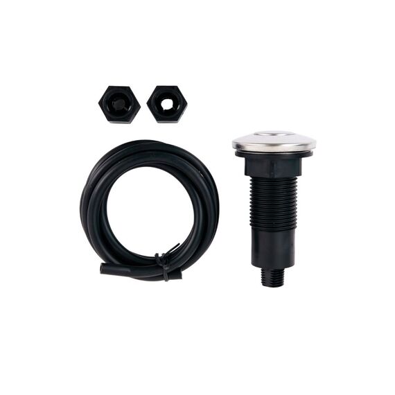 Прибор, инструкция на русском языке, гарантийный талон, крышка толкатель, заглушка из нержавеющей стали, магнитный улавливатель, пневмокнопка, выпускное колено, съёмный брызговик
