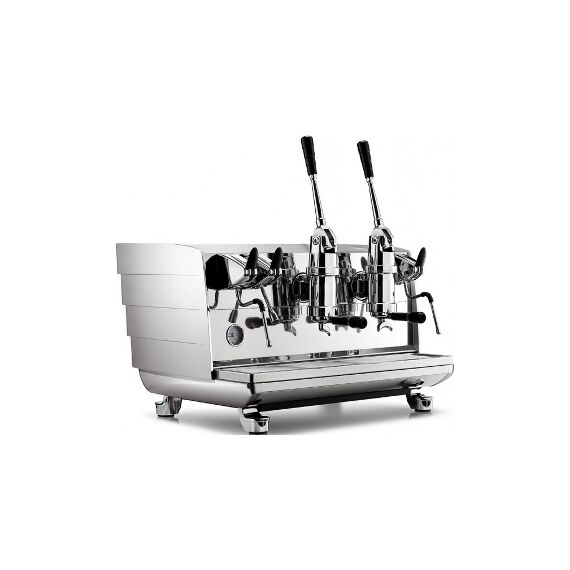 820x660x510/820 мм, 220 V, 3 кВт, кофемашина традиционная c ручной (леверной) подачей, имеет 2 группы, объём бойлера 14л, корпус из нержавеющей стали. Механизм ручной подачи имитирует способ приготовления кофе в 40-ые годы Машина оснащена 2 паровыми кранами, краном подачи воды, отражающим зеркалом в нижней фронтальной части, которое позволяет оператору видеть дно портафильтра, подсветкой логотипа на задней панели