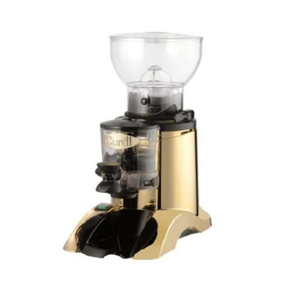210х380х470 мм, 8 кг, 275 Вт, емкость бункера1кг, пр-ть 500 г за 6 минут (максимум 2 кг без остановки), бункер для молотого кофе 0.3кг, цвет-золотой. микрометрическая регулировка степени помола, регулировка выдачи молотого кофе 5-12г., жернова d 60 мм, мотор с термозащитой, корпус из единого куска пластика (защита от царапин) с системой вентиляции