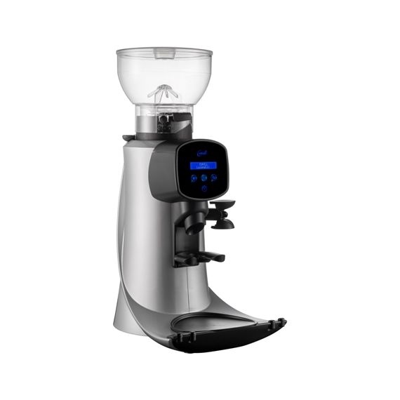 285х405х626 мм, 17,5 кг, 0.497кВт, пр-ть 500 г за 3 минуты (максимум 4 кг без остановки), бункер на 1кг, дозатор от 5 до 12г, микрометрическая регулировка степени помола, бесшумная - уровень шума 55 db. Цифровая панель. 1300 об/мин. цвет - серый металик. Прямой помол, жернова d 65 мм