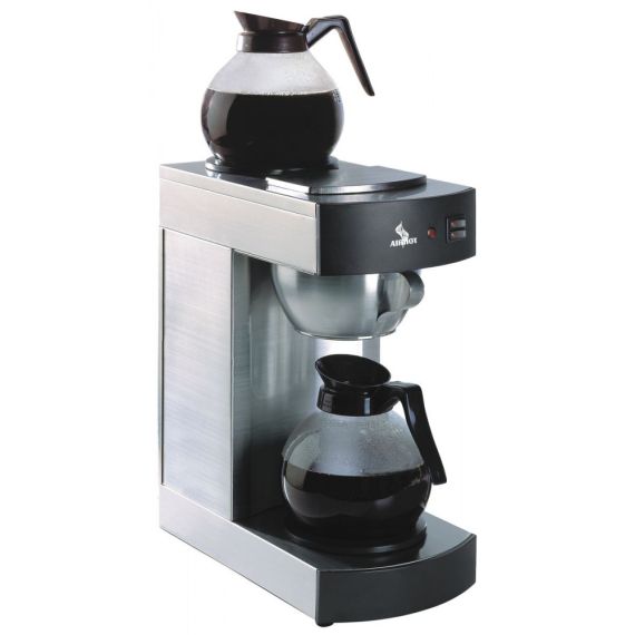360х196x430 мм, 2,2 кВт, 220 В, для молотого кофе, объем кофейника 1,9л, время приготовления 7 мин, 25 фильтров для кофе в комплекте, без стеклянных колб, корпус нерж. сталь