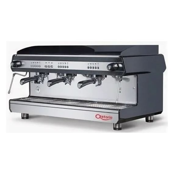 940x540x520 мм, 230-400 В, 5,3 кВт, объем бойлера 17 литров, цвет - ЧЕРНЫЙ, низкие группы, встроенный мотор-помпа, 3 группы, БЕЗ УМЯГЧИТЕЯ, 2 крана подачи пара, 1 кран горячей воды