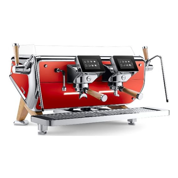 1035x618x500 мм, 4,8 кВт, 220-400 В, мультибойлерная: объем бойлера 8,5 л+2 по 1,2 л, 2 ГРУППЫ, цвет - КРАСНЫЙ/ХРОМ, 2 крана подачи пара, 1 кран смешивания горячей воды, AWR, 5 дисплей для каждой группы, led-подсветка рабочего пространства, электрон. нагреватель чашек, пароотводы Barista Attitude, система пара Superdry, Steam Boost (SB), деревянные фильтр-холдеры, встроенная помпа