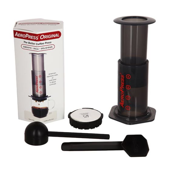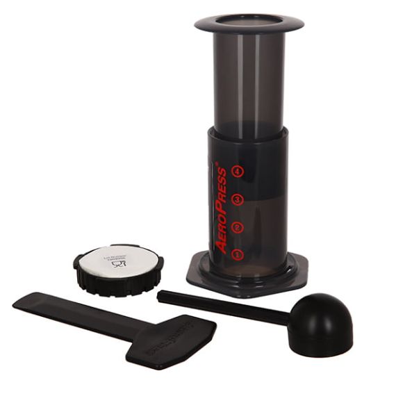 -В набор входит: аэропресс, воронка для засыпания кофе, фильтры — 350 шт, держатель для фильтров, ложка для дозирования кофе, палочка для перемешивания кофе.
