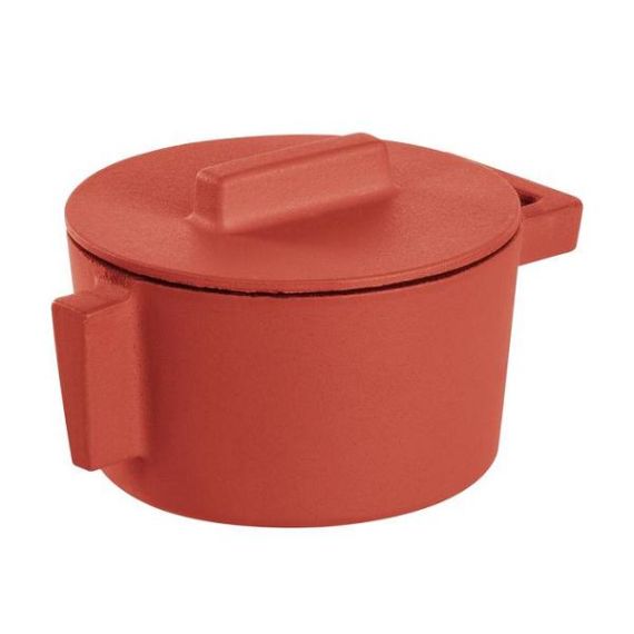 Кокотница чугунная 0,31л d10см h7,5см, с крышкой, цвет Паприка 51607P10