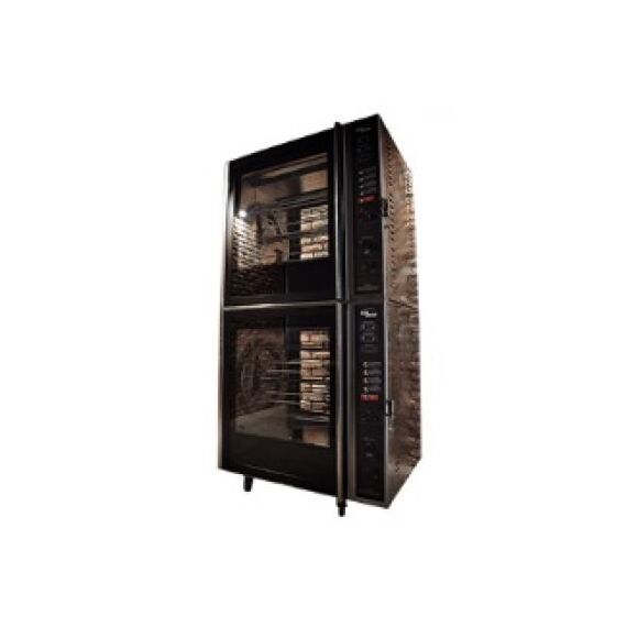830х780х1790 мм, Установленные в единую колонну гриль-гриль. Гриль нового поколения, 6+6 спиц для одновременного приготовления 48 тушек (до 2 кг), опционально 6+6 корзин для кур и субпродуктов, или 6+6 угловых шампуров для кур (опция), возможно одновременное использование корзин и спиц для приготовления, мощные вентиляторы конвекции, яркая галогенная подсветка камер(600+600 Вт), 3 режима приготовления, термощуп, электронная панель управления 1 уровня, сквозной доступ в камеру грилей (2 двери), стекла грилей с теплоотражающим покрытием, полностью из н/стали, может быть выкрашен в цвет на выбор клиента, 50-250 С, установлены в единую колонну, нижний гриль на колесах со стопорами 8 кВт+8 кВт, единое подключение 380В, г.нетто 830х780х1790мм, г.брутто 420кг