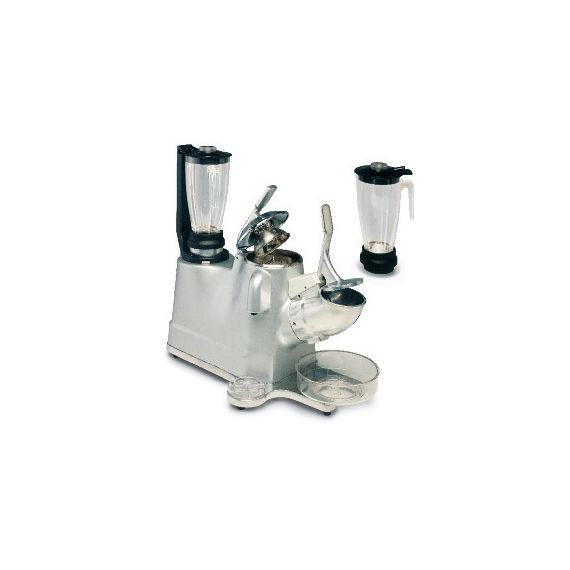 530х250х540 мм, 220 V, 0,65кВт, 2 скорост., 1 пласт. кувшин 1,2 л. Метализированный, крашеный в серый цвет корпус. Высокопрофессиональные многофункциональные электроприборы, совмещающие следующие функции: измельчитель льда, автоматизированная соковыжималка для цитрусовых, блендер. Комбинированный конкус из поликарбоната для лимона, апельсина, грейпфорута. Блендер двухскоростной. Термозащита