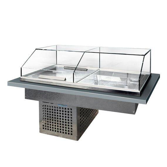 Встраиваемая комбинированная витрина GALA имеет 2 независимых объема и подойдет для кратковременного хранения или демонстрации в охлажденном виде. Промежуточное стекло позволяют хранить различные товарные группы независимо друг от друга. Теперь в одной витрине вы можете хранить как различные готовые блюда, требующие охлаждения, так и продукты непродолжительного хранения, выпечку или использовать витрину для складирования полуфабрикатов.