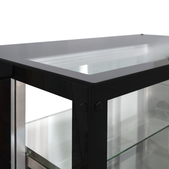 Выкладка продуктов для демонстрации осуществляется на дно и промежуточные полки витрины. Оформление двойным стеклопакетом с четырех сторон позволяет удобно рассматривать гостям предложенный товар.