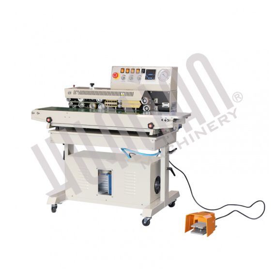 Конвейерный запайщик FRM-980ZQ представляет серию роликовых запайщиков непрерывного типа FRM. Относится к горизонтальным запайщикам – т.е. при сваривании пакет подается на конвейер лежа (плашмя). Исполнение на консоли (подставке).