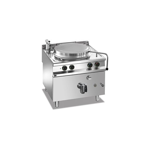 Электрический котел 900 серии APKE-89 предназначен для варки и кипячения больших объемов жидких блюд и продуктов, например для приготовления супов, бульонов, компотов, кипячения молока.Столешница, вентиляционная решетка и передняя панель котла выполнены из нержавеющей стали AISI 304, боковые и задняя панели - из нержавеющей стали AISI 430. Толщина металла 1 мм.Бак выполнен из нержавеющей стали AISI 304, дно бака из нержавеющей стали AISI 316.Объем котла 100 литров. Тип нагрева косвенный. Пароводяная рубашка обеспечивает равномерный нагрев по всему объему без пригорания продукта.Предохранительный клапан давления в пароводяной рубашке обеспечивает безопасную эксплуатацию аппарата.Сбалансированная крышка из нержавеющей стали AISI 304 гарантирует минимальную потерю тепла и влаги.Котел оснащен краном для залива холодной и горячей воды в варочный бак и краном для слива готового продукта.Регулировка мощности нагрева производится при помощи 4-позиционного переключателя.Данная модель укомплектована регулируемыми нож