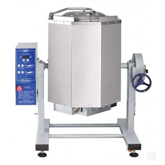 Котел пищеварочный электрический Abat КПЭМ-60-ОМР-В с функциями перемешивания и ручного опрокидывания предназначен для приготовления бульонов, соусов, десертов, вторых и третьих блюд. Применяется на предприятиях общественного питания как самостоятельный элемент, так и в составе технологических линий.Принцип работы основан на косвенном обогреве паром содержимого в варочном котле, который образуется при нагреве теплоносителя в рубашке. Такой процесс обогрева полностью исключает пригорание продуктов.Блюда могут приготавливаться как с перемешиванием, так и без функции миксера и при необходимости миксер легко снимается.ОСОБЕННОСТИ:цельнотянутый (без сварных швов) варочный сосуд из аустенитной нержавеющей стали марки AISI 304;по запросу возможно изготовление варочного сосуда из кислотостойкой нержавеющей стали марки AISI 316;корпус из аустенитной нержавеющей стали AISI 304;подставка на регулируемых опорах, оснащенная 4-мя передвижными колесами;объем варочного сосуда 60 л;опрокидывание с помощью ручного привода;элек