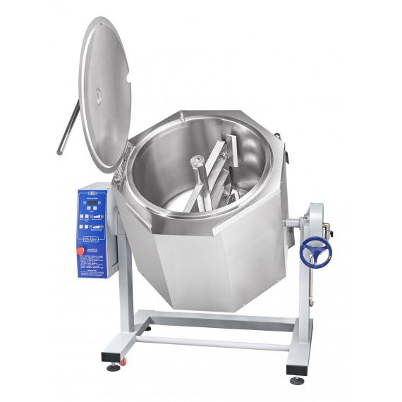 1310х918х1256мм, Котел пищеварочный электрический КПЭМ-100-ОМР-В, 100 л, миксер 0-120 об/мин (10 шагов, нижний привод, реверс), +125 С, пар. рубашка, ручное опрокидывание, цельнотянутый