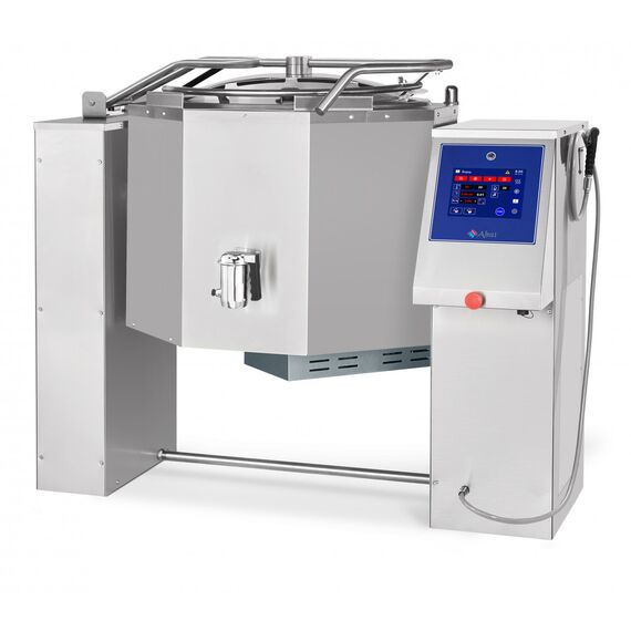 1363х980х1150мм, Котел пищеварочный электрический КПЭМ-100-ОМП со сливным краном, 100 л, электропривод, TFT-экран, USB-порт, пар. рубашка, миксер 0-120 об/мин (плавная регулировка, нижний привод, реверс), память на 50 программ (5 шагов), +3…+110С, нагрев/охлаждение