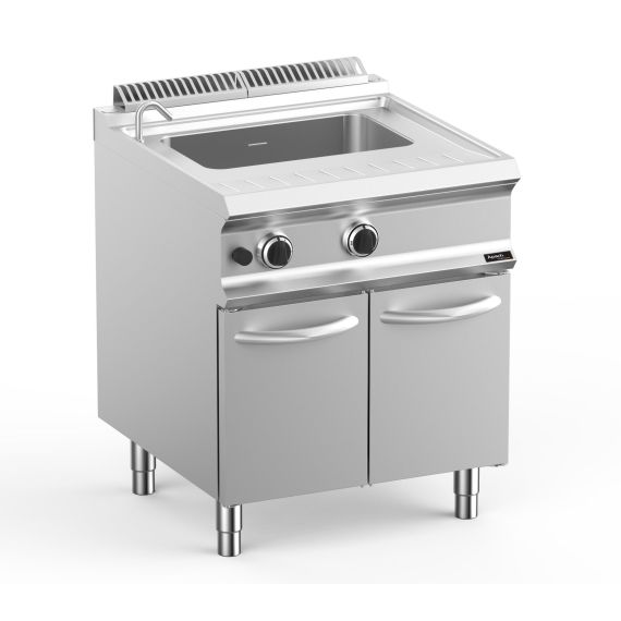 800х900х850 мм, 94 кг, газ 26,6 кВт, 2 ванны по 40 литров, на закрытой подставке