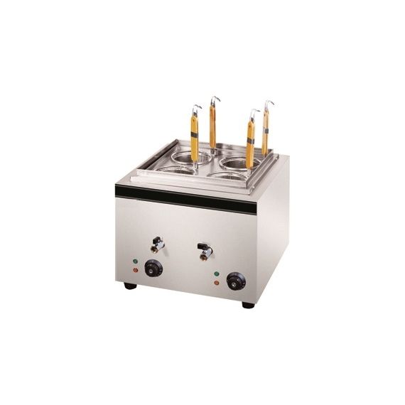 420x470x360(540)мм, 220В, 4 кВт, 22 кг, температурный диапазон 50-110С, 2 ванны по 8 л, при одетой решётке - на 4 цилиндрические корзины (корзины 4шт. идут в комплекте), размеры корзины: диаметр 137 мм, глубина 127 мм, объём 1,8 л, при снятой решётке - возможно использование прямоугольных корзин (длина не более 145 мм, ширина не более 295 мм), идеально подходят корзины APACH A770049, подходят корзины APACH B800003, B800004, B800005 (все по одной на ванну), материал корпуса нержавеющая сталь