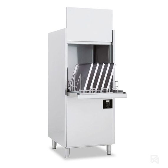 719*782*1727, 380В, 10,5кВт, циклы 120/240/360/720 сек, спец. циклы 300/480/600 сек., цикл самоочистки, панель управления электронная, высота загрузочного окна 650 мм, кассета 560х630 мм, подключ. к хол. воде, 1 мет. корзина в комплекте, дозаторы моющего и ополаскивающего средств