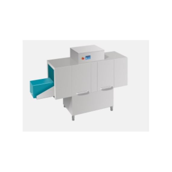 2800x805x2130/2720/2120, 33 кВт, 400В, можно мыть перфорированные ящики, , производительность - 1.5-2.0 м/мин, размер проема: 510хh800мм. мин., потреб.воды при ополаск.-320л/ч. Подключение к горячей воде