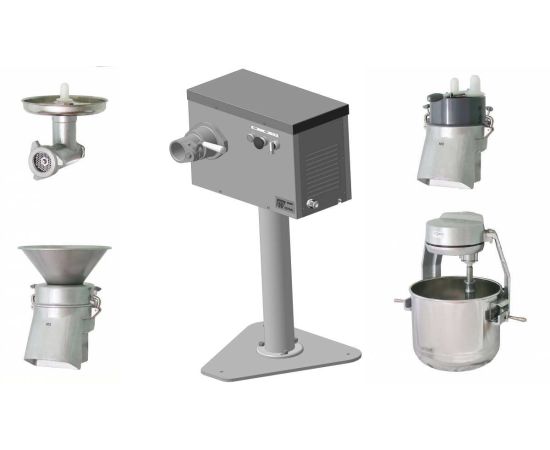 920x586x887мм, Машина кухонная универсальная предназначена для механизации основных процессов переработки пищевых продуктов на предприятиях общественного питания. Включает в себя насадки: ПМ -приводной механизм, две скорости : I -200 об/мин, II -380 об/мин, ММ-мясорубка для приготовления мясного и рыбного фарша,производительность до 180 кг/ч, наружный диаметр ножевых решеток - 82 мм, комплектация : решетка подрезная -1 шт, решетка ножевая d 5 мм -1 шт,решетка ножевая d 9 мм -1 шт, нож двусторонний -2 шт, кольцо упорное -1 шт, ВМ -механизм для взбивания кондитеских смесей, картофельного пюре, муссов, замешивания жидкого теста, а так же перемешивания мясного фарша и других продуктов, бак(дежа) из нерж. стали на 25 л, насадки : взбиватель четырехлопастной,взбиватель прутковый, фаршемешалка, МО- механизм овощерезательно-протирочный для нарезания,шинковки сырых и вареных овощей и фруктов (производительность до 100-350 кг/ч) и протирания вареных овощей и фруктов (производительность до 40