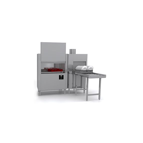 1964*880*1775, 380В, 35,05кВт, 120/60 кассет/час, дозаторы, подключение к холодной воде, кассета для тарелок, кассета для стаканов, вставка для приборов, угловая сушка, конвейер слева направо