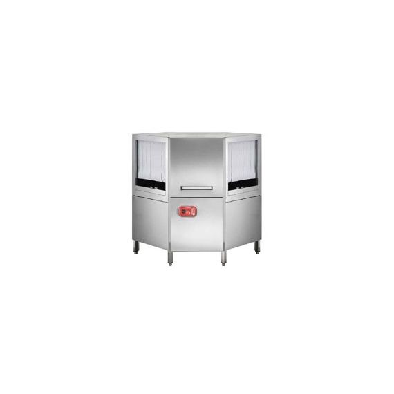 Конвейерная посудомоечная машина, производства COMENDA (Италия) модель AC2A (угловая), предназначена для автоматизации процесса мытья посуды и соответствия требованиям санитарных норм на предприятиях питания. В основе конструкции этой модели лежит специальный конвейер, предназначенный для транспортировки корзин, заполненных посудой, через секции машины, в которых выполняются мытье и ополаскивание. Конвейер данной модели имеет 1 скорость движения и позволяет вымыть: 100 корзин (около 1800 тарелок) за час. AC2A позволяет мыть не только столовую посуду и приборы, но и подносы. Скорость движения конвейера определяется стандартами Национальной санитарной организации страны-изготовителя. Направление движения конвейера посудомойки – справа налево.Устройство оснащено простой электромеханической панелью управления с цифровым дисплеем, отображающим температуры мойки и ополаскивания. В отличие от купольных посудомоечных машин с вместительностью на две корзины, в этой посудомойке не приходится ждать окончания работы для